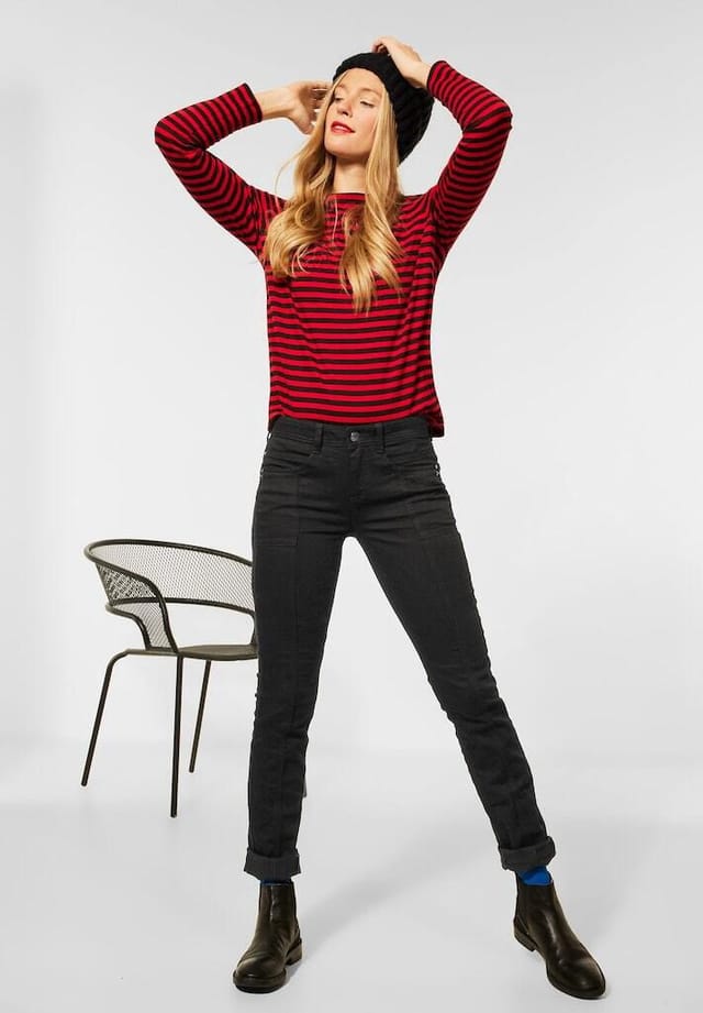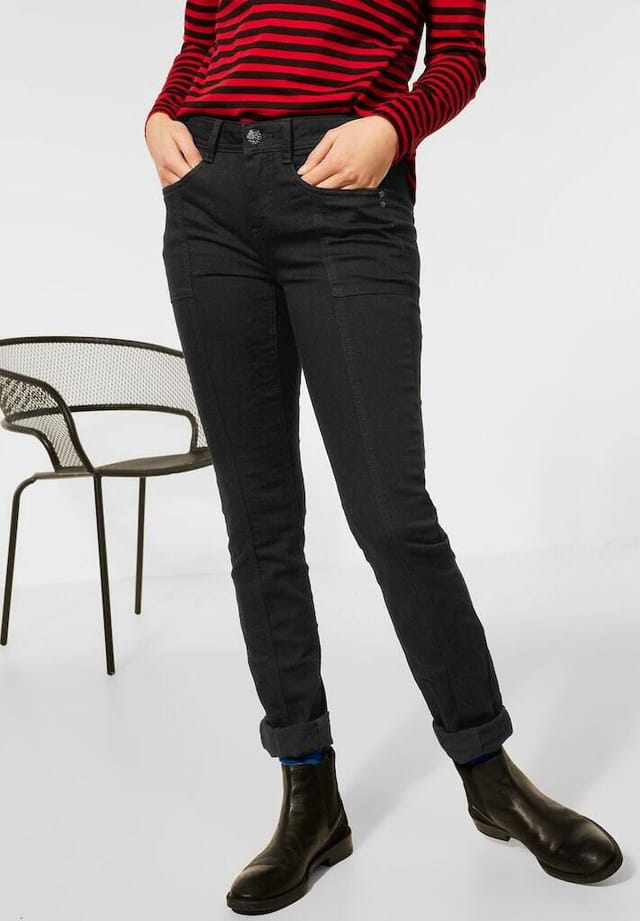 Описание товара: Женские джинсы Street One. Эти женские джинсы Street One — абсолютный must-have для модниц. Благодаря своему вневременному дизайну и высококачественному изготовлению они предлагают идеальное сочетание стиля и комфорта. Качественные материалы: эти джинсы изготовлены из 72% хлопка, 27% полиэстера и 1% эластана. Материал не только удобен в носке, но и долговечен, сохраняет форму. Он обеспечивает идеальную посадку и свободу движений в течение всего дня. Универсальный стиль: эти женские джинсы Street One можно комбинировать по-разному, и они подойдут для любого случая. Независимо от того, носите ли вы их с футболкой и кроссовками или надеваете с блузкой и высокими каблуками, эти джинсы всегда будут правильным выбором. Идеальная посадка: благодаря эластичному материалу и удобному крою эти женские джинсы Street One идеально сидят. Они облегают фигуру и подчеркивают женственные изгибы. Простота ухода: эти женские джинсы Street One просты в уходе и их можно легко стирать в стиральной машине. Таким образом, он долго остается как новый и сохраняет свой цвет и форму.