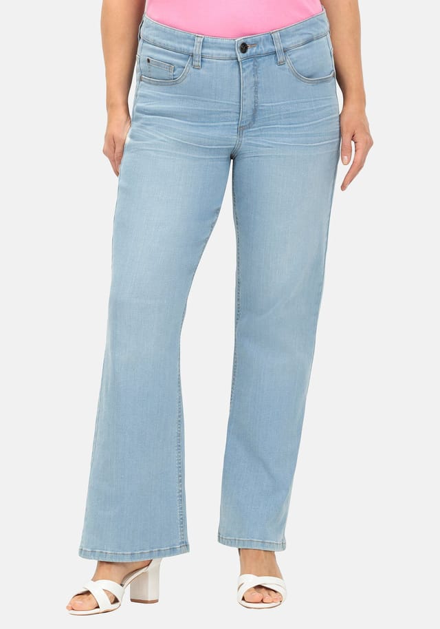 Описание товара: Эти джинсы sheego bootcut имеют типичный крой с пятью карманами. Индивидуальные эффекты использования и постоянные 3D catfaces придают им повседневный вид. Джинсы скроены со слегка расклешенными штанинами bootcut, что создает женственные пропорции и визуально удлиняет ноги. Изготовлены из эластичного денима. В размере 44 ширина подола составляет 53 см.