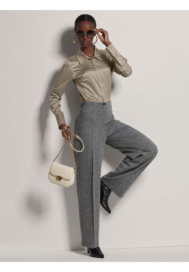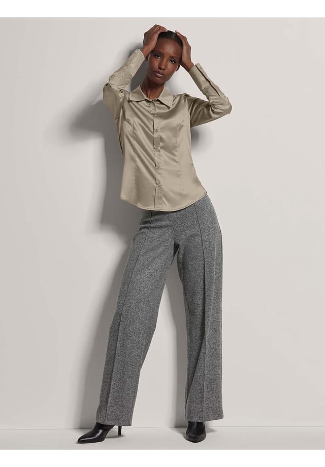 Описание товара: Классика с изысканным блеском, универсальная в сочетании и удобная в носке. Воротник рубашки, планка на пуговицах и длинные рукава с широкими манжетами на пуговицах являются современными. Вытачки на груди, талии и спине придают блузке идеальную посадку, а закругленные края подола приглашают вас носить ее поверх чего угодно. Разрезы по подолу непринужденно завершают образ.