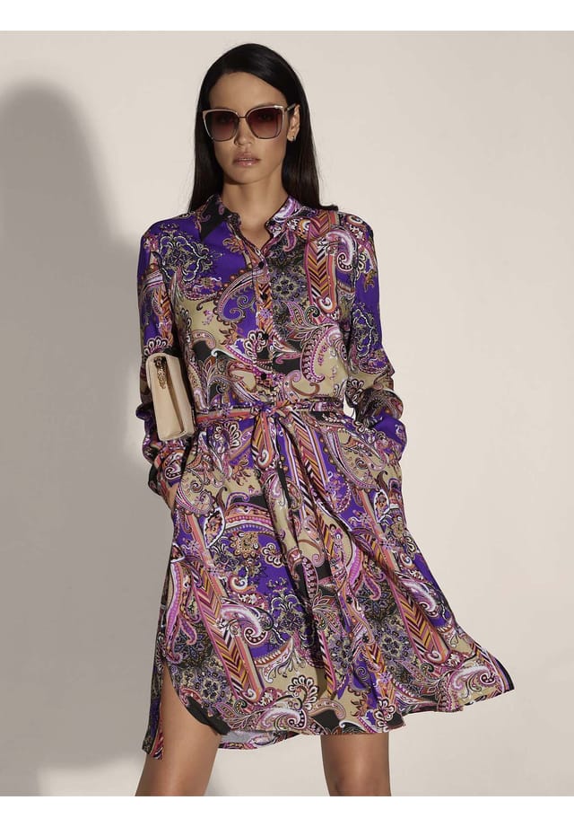 Описание товара: Волшебное платье-рубашка с большим количеством струящихся элементов. Мягкая, струящаяся вискоза украшена красивым узором пейсли по всей поверхности. Принт варьируется от стиля к стилю, делая каждое изделие уникальным! Воротник рубашки, застежка на пуговицы во всю длину, длинные рукава с манжетами и кокетка сзади являются типичными для этого стиля. Завязывающийся пояс и боковые карманы искусно завершают стиль.
