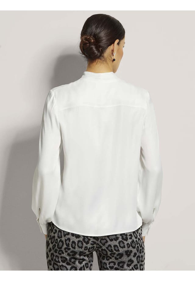 Описание товара: Роскошная атласная блузка, которая очаровывает не только своим элегантным блеском! Мягкое, струящееся качество и элегантный дизайн с длинным воротником и галстуком-бабочкой делают ее вечным фаворитом. Полноразмерная планка на пуговицах, длинные рукава с широкими, слегка присборенными манжетами на пуговицах и слегка закругленный подол с боковыми разрезами завершают образ. Идеально подходит для любого случая!