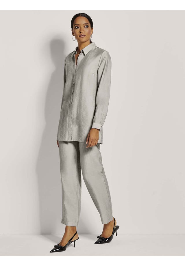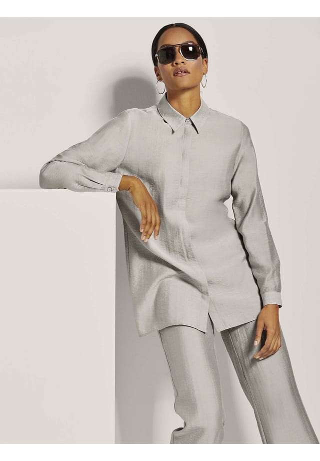 Описание товара: Эта длинная блузка свободного покроя — обязательная вещь для любого современного гардероба. Модная фактура поверхности придает ей уникальный штрих, делая ее настоящей фавориткой. Благодаря боковым разрезам по подолу она идеально подходит для многослойности, в то время как скрытая планка на пуговицах остается тонкой и не перегружает стиль. Классические манжеты на рукавах дополняют образ и делают блузку универсальным повседневным спутником. Носите ее в соответствии с настроением, чтобы создать беззаботный, стильный образ.