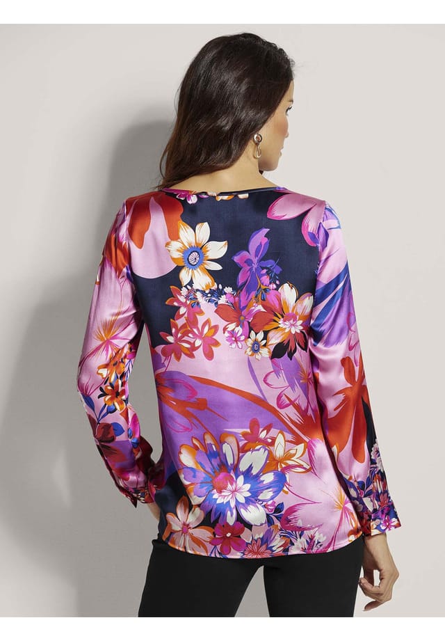 Описание товара: Чистый шелк — одно из самых ценных натуральных волокон, которое дарит коже мягкость и струящийся комфорт. Здесь представлена блузка с круглым вырезом и волшебным цветочным принтом, который заставит всех модниц биться быстрее. Длинные рукава с узкими манжетами на пуговицах завершают модный образ и добавляют элегантности вашему наряду. Что в ней особенного: Чистый шелк чрезвычайно устойчив к сминанию и поэтому идеально подходит для вашего чемодана для отпуска. Будь то для особых случаев, повседневной носки или во время путешествий — эта блузка — вневременная эффектная вещь, без которой не должен быть ни один гардероб.