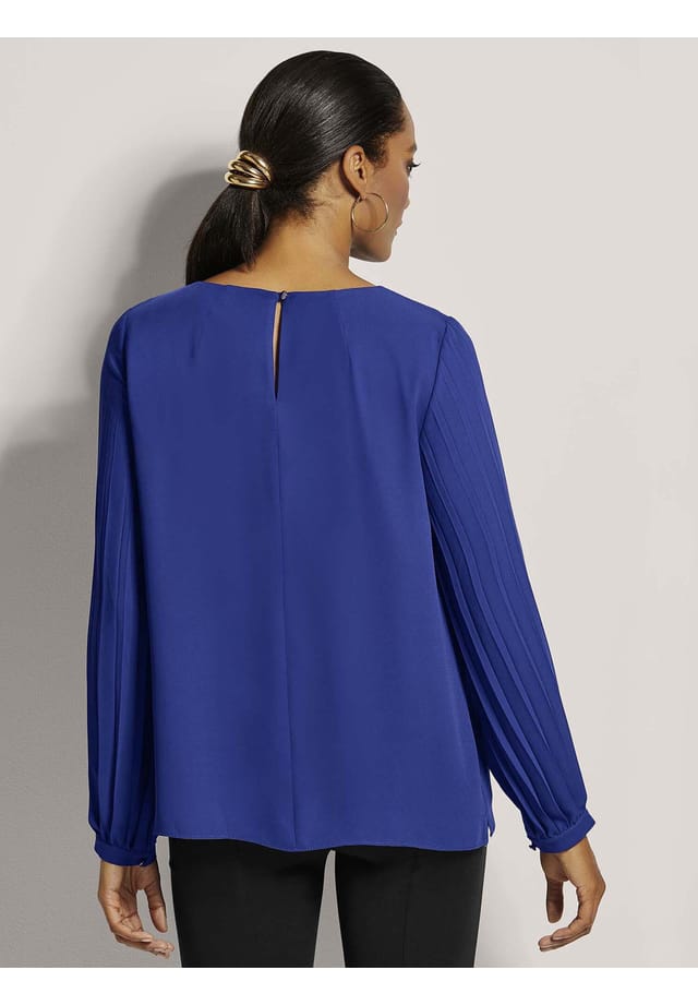 Описание товара: Наша блузка свободного прямого кроя — это must-have для каждого гардероба. С любовью собранный круглый вырез с застежкой на пуговицы сзади обеспечивает легкое одевание и раздевание. Длинные рукава с изысканными плиссированными акцентами и небольшими манжетами на пуговицах придают блузке элегантный вид. Слегка закругленный подол с небольшими боковыми разрезами идеально подходит для многослойности. Эта блузка идеально сочетает в себе комфорт и стиль и подходит как для повседневной носки, так и для особых случаев. Универсальная вещь, без которой не должен быть ни один гардероб.