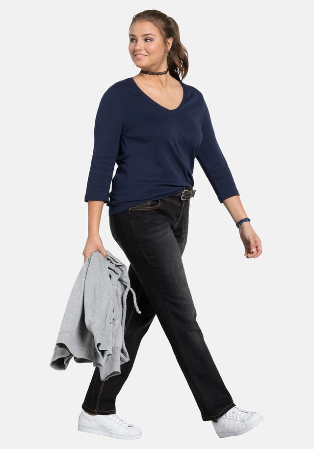 Джинсы »прямые« с эффектами потертости Sheego, черный