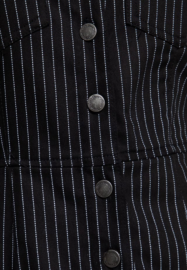Описание товара: Откройте для себя заново классический винтажный стиль рабочей одежды с платьем-карандашом от Queen Kerosin. Изготовленное из высококачественного материала с добавлением эластана, это платье-карандаш обеспечивает исключительный комфорт и оптимальную свободу движений. Фирменный дизайн в тонкую полоску в сочетании с классическим воротником рубашки и застежкой на пуговицах во всю длину из прочных металлических пуговиц отражает подлинную винтажную эстетику. Короткие рукава заканчиваются двойными манжетами, а облегающий крой искусно подчеркивает ваши изгибы для силуэта, который одновременно элегантен и сексуален. Образ в стиле пин-ап дополняется высокими каблуками, которые добавляют дополнительную дозу сексуальности в наряд. Будь то на танцполе на рок-мероприятии или на неформальной встрече классических автомобилей, вы будете вскружить голову и излучать уверенную элегантность в этом платье. Воплотите в себе неповторимый стиль Queen Kerosin и будьте готовы к восхищению, куда бы вы ни пошли.