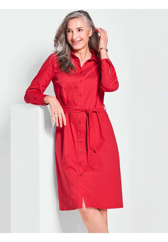 Описание товара: Классическое платье-рубашка-блузка, которое предлагает множество вариантов стилизации: носите его полностью застегнутым как платье или расстегнутым как блузку поверх брюк и рубашки. Завязывающийся пояс доводит платье до талии; без пояса оно подчеркивает прямой, облегающий крой. Длинные рукава с манжетами можно индивидуально закатать. Имеет практичные карманы в боковом шве. Приятная смесь хлопка с эластаном обеспечивает максимальный комфорт. Длина около 106 см для размера 46, около 106 см для размера 46. 100 см для размера 23.