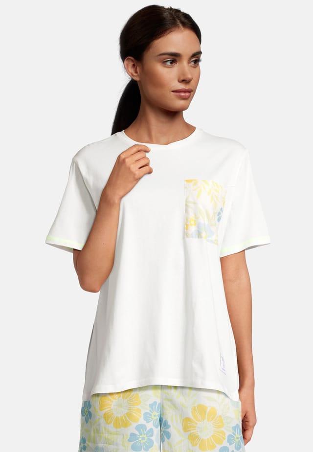Описание товара: Летняя футболка свободного покроя с накладным нагрудным карманом с цветочным принтом.