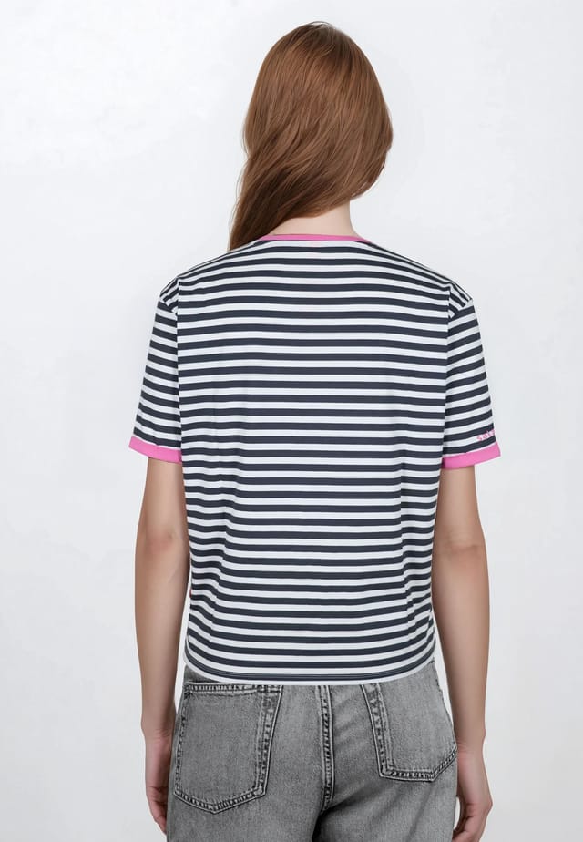 Описание товара: Модная футболка в полоску с акцентами или, по желанию, в стиле колор-блок.