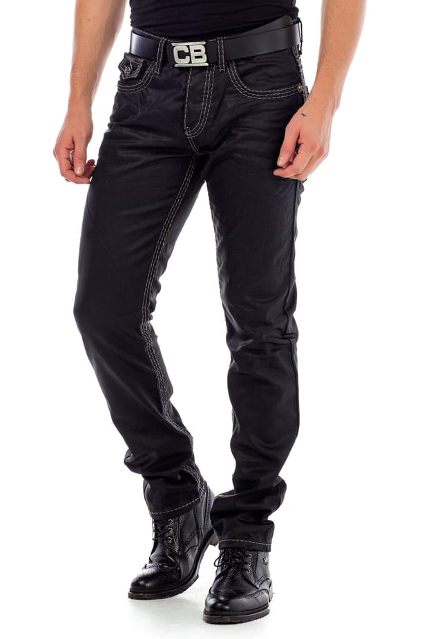 Джинсы прямого кроя с блестящим матовым эффектом Cipo & Baxx, черный