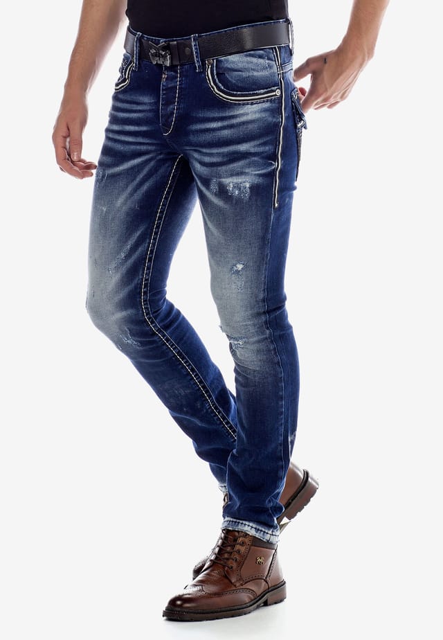 Джинсы прямого кроя с эффектом потертости Cipo & Baxx, синий