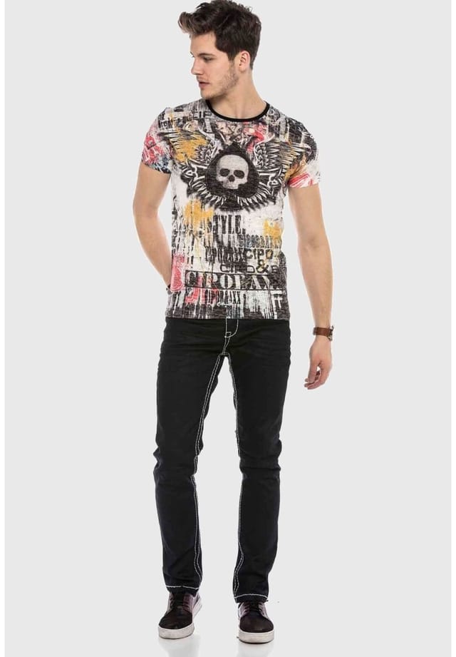 Бренд: Cipo & Baxx Цвет: черный Общие инструкции по уходу: Не отбеливать; Не гладить в горячей воде; Не подвергать химической чистке; Не сушить в стиральной машине; 30°C Легкий уход Инструкции по уходу за текстильными изделиями: Деликатная стирка при 30°C, не отбеливать, не сушить в стиральной машине, не гладить в горячей воде, не подвергать химической чистке Материал одежды: Всего: 55% вискозы, 42% хлопка, 3% вискозы