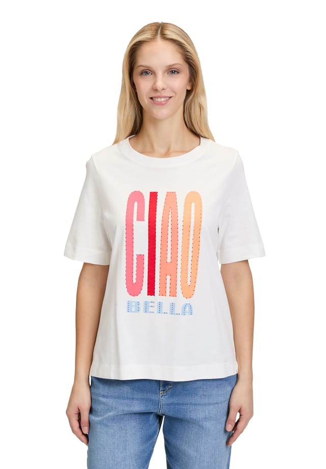 Описание товара: Обязательно для вашего гардероба! Наша рубашка с принтом с тщательно размещенным мотивом и деталями hotfix задает повседневный тренд. Круглый вырез и рукава до половины длины придают ей современный вид. Стильное заявление для непринужденных нарядов.
