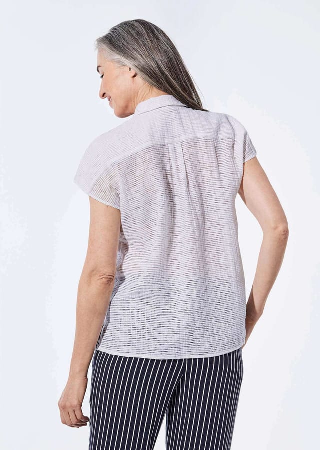 Описание товара: Блузка с изысканными деталями в непринужденном стиле. Воротник рубашки и застежка на пуговицы по всей длине добавляют классические акценты, в то время как спущенные плечи очаровательно обрамляют верхнюю часть руки. Кокетка сзади и складка по центру спины обеспечивают удобную посадку. Разрезы по бокам и прямой подол обеспечивают свободу движений. Изготовлена из воздушной декоративной выжженной ткани с вискозой. Длина около 66 см для размера 46, около 62 см для размера 23.