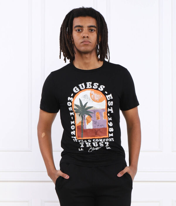 Футболка с пальмовым окном Slim fit Guess Jeans, черный