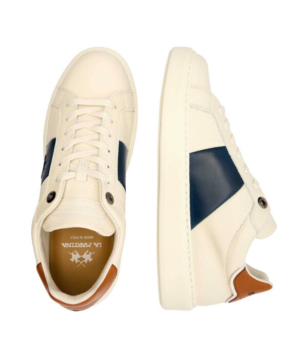 Кожаные кроссовки коричневого цвета La Martina, белый