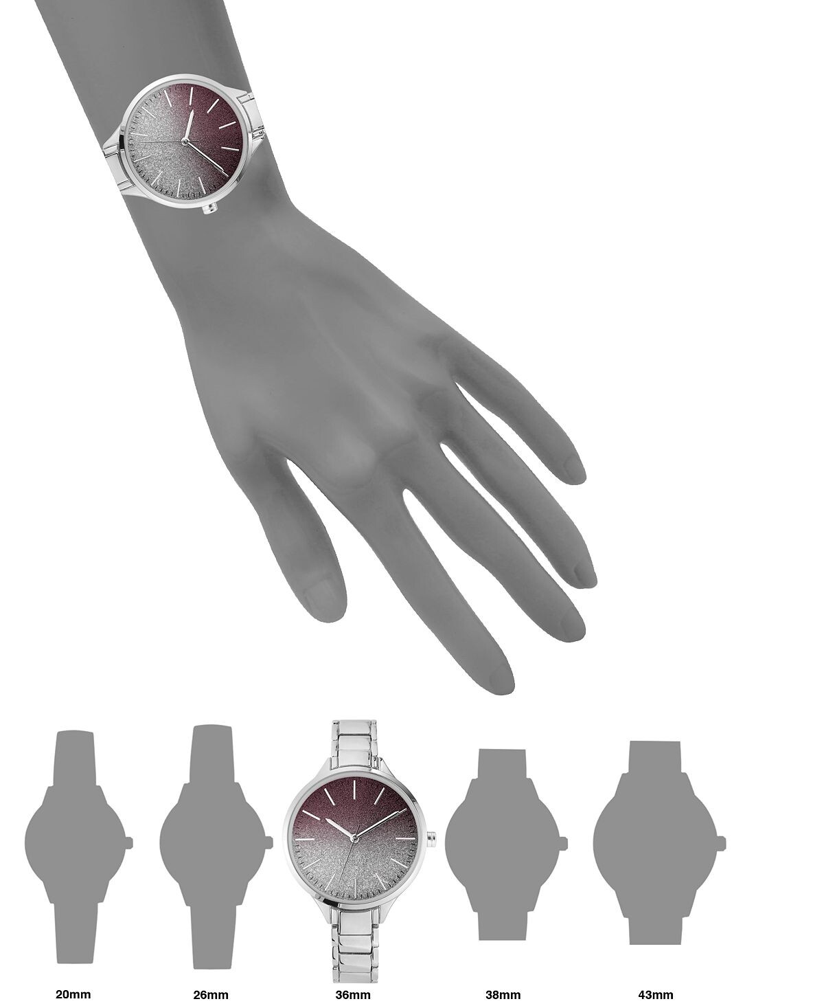Эти вневременные часы из оружейной стали оснащены изящным браслетом и изящным циферблатом с эффектом омбре. Стиль № NW-2337OMSV.