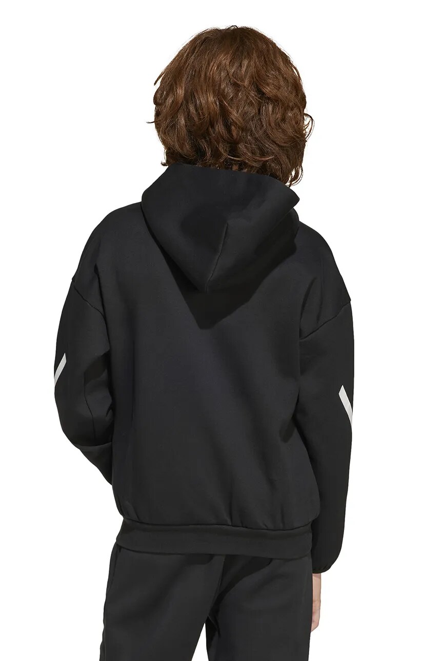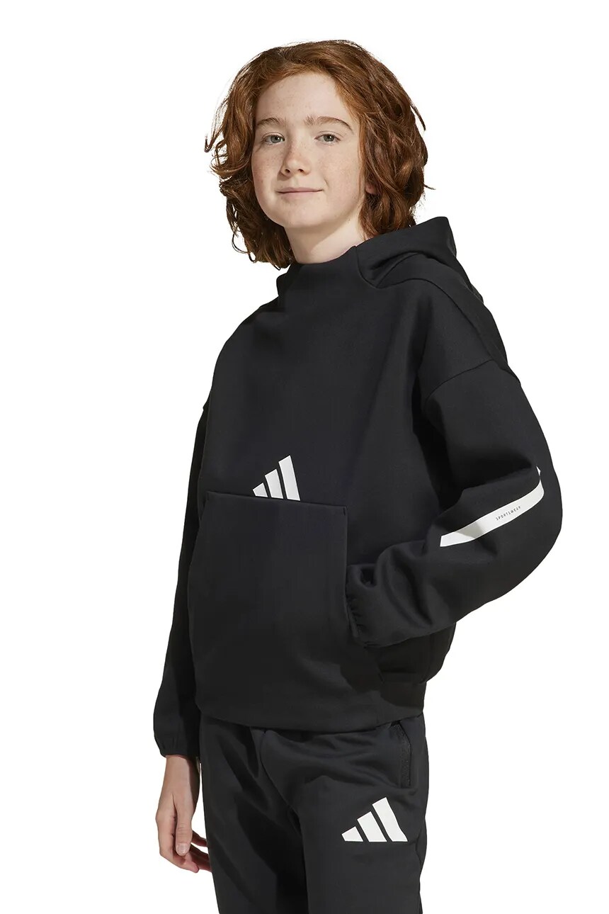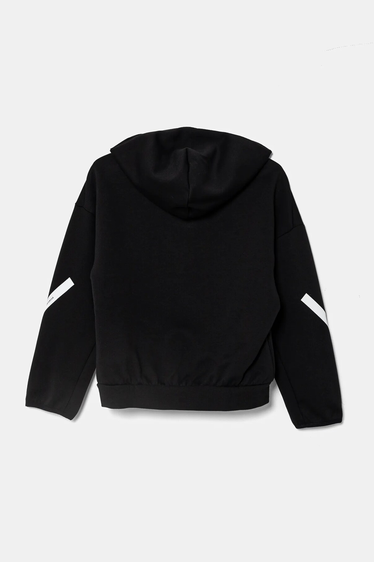 Детская толстовка с капюшоном из коллекции adidas, выполненная из тонкой, слегка эластичной ткани. Благодаря содержанию полиэстера материал обладает повышенной устойчивостью к сминанию.