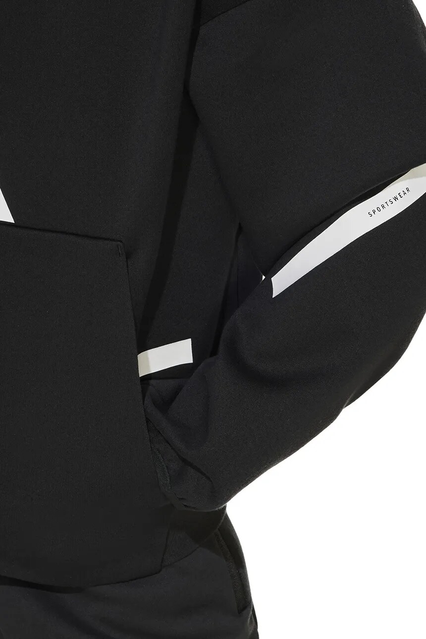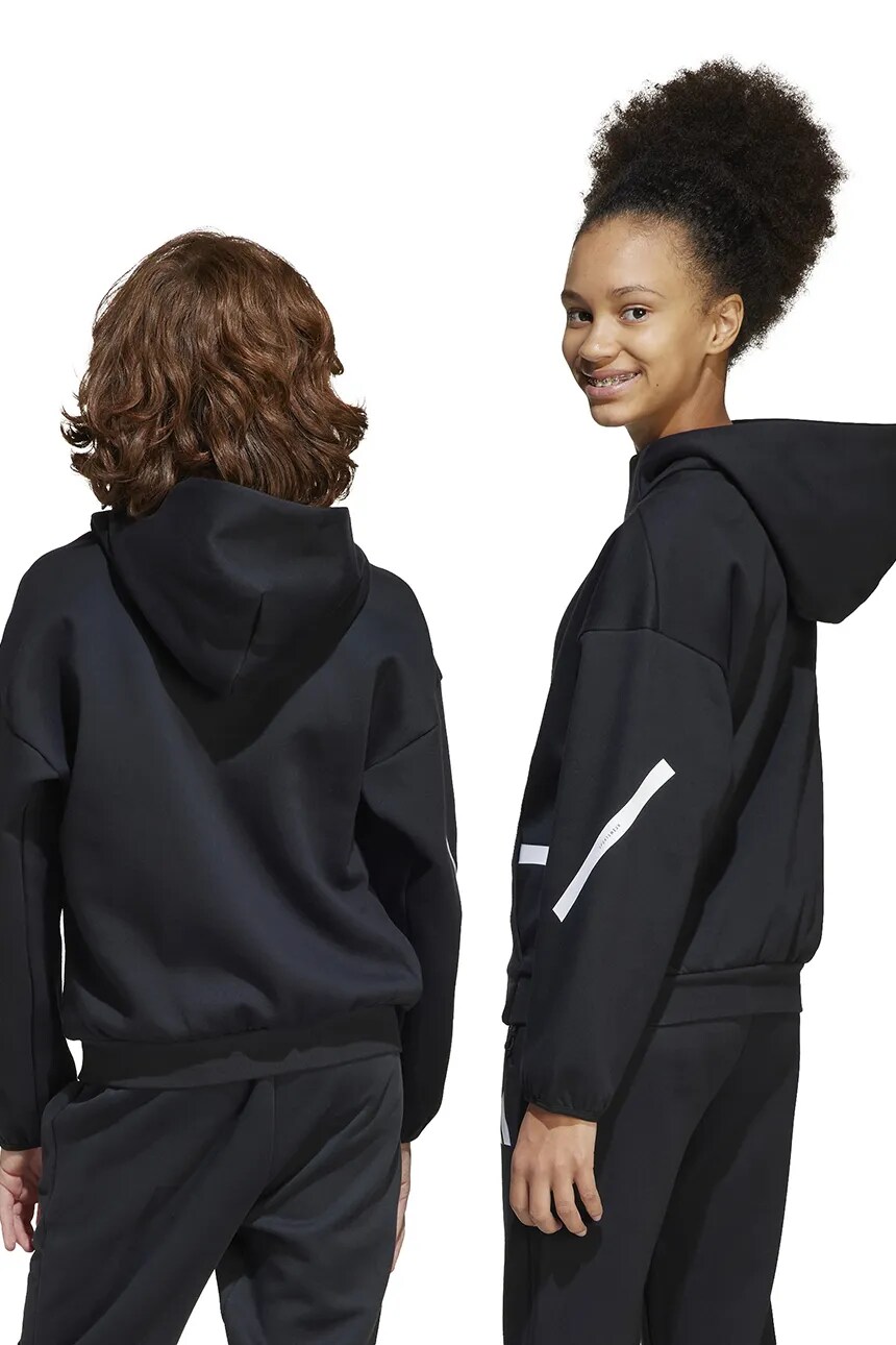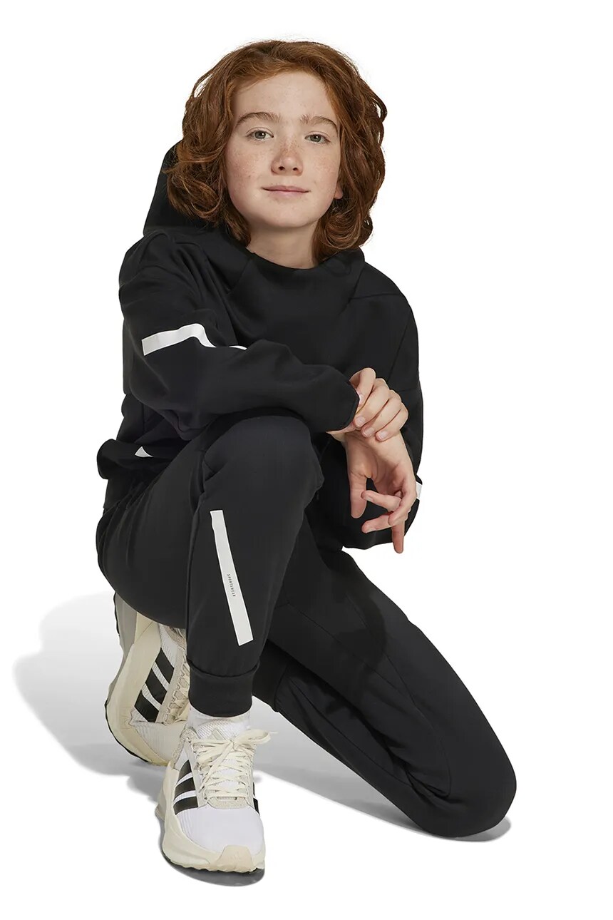 Детская толстовка с капюшоном из коллекции adidas, выполненная из тонкой, слегка эластичной ткани. Благодаря содержанию полиэстера материал обладает повышенной устойчивостью к сминанию.