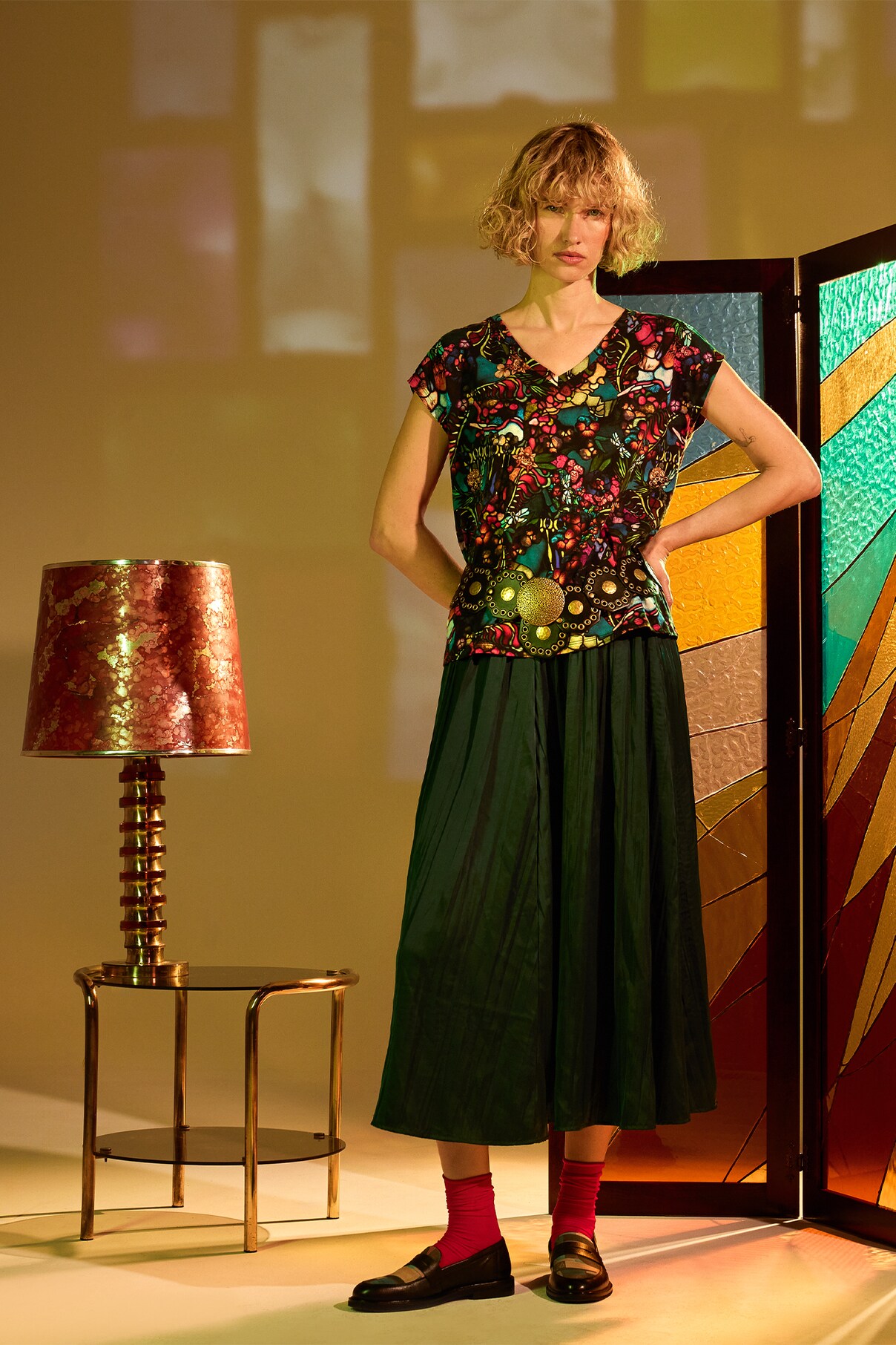 Коллекция Eviva L'arte 2025 посвящена произведениям рубежа XIX и XX веков, оставившим след в истории дизайна и архитектуры. Стиль модерн , известный в Польше как ар-нуво , был настоящим взрывом индивидуализма и воображения — он произвел революцию в искусстве, привнеся в него плавные линии, асимметрию и вдохновение природой. В знак уважения к художественной эпохе были созданы гравюры и узоры, вдохновленные работами мастеров: Густава Климта, Станислава Выспяньского, Юзефа Мехоффера и Яцека Мальчевского. Также были представлены работы таких художников, как Альфонс Муха, Эгон Шиле, Жорж де Фёр и Теофиль Александр Стейнлен. Увлеченные органическими формами, они черпали вдохновение в природе, создавая произведения, сочетающие красоту и функциональность. В коллекцию входят, среди прочего: футболки, толстовки, куртки и рубашки — их насыщенные цвета, изысканные узоры и причудливые крои позволяют ощутить гармонию искусства и моды. Все это дополняют необычные аксессуары, такие как бейсболки, косметички, термосы, кружки и одеяла, наполненные художественным духом.