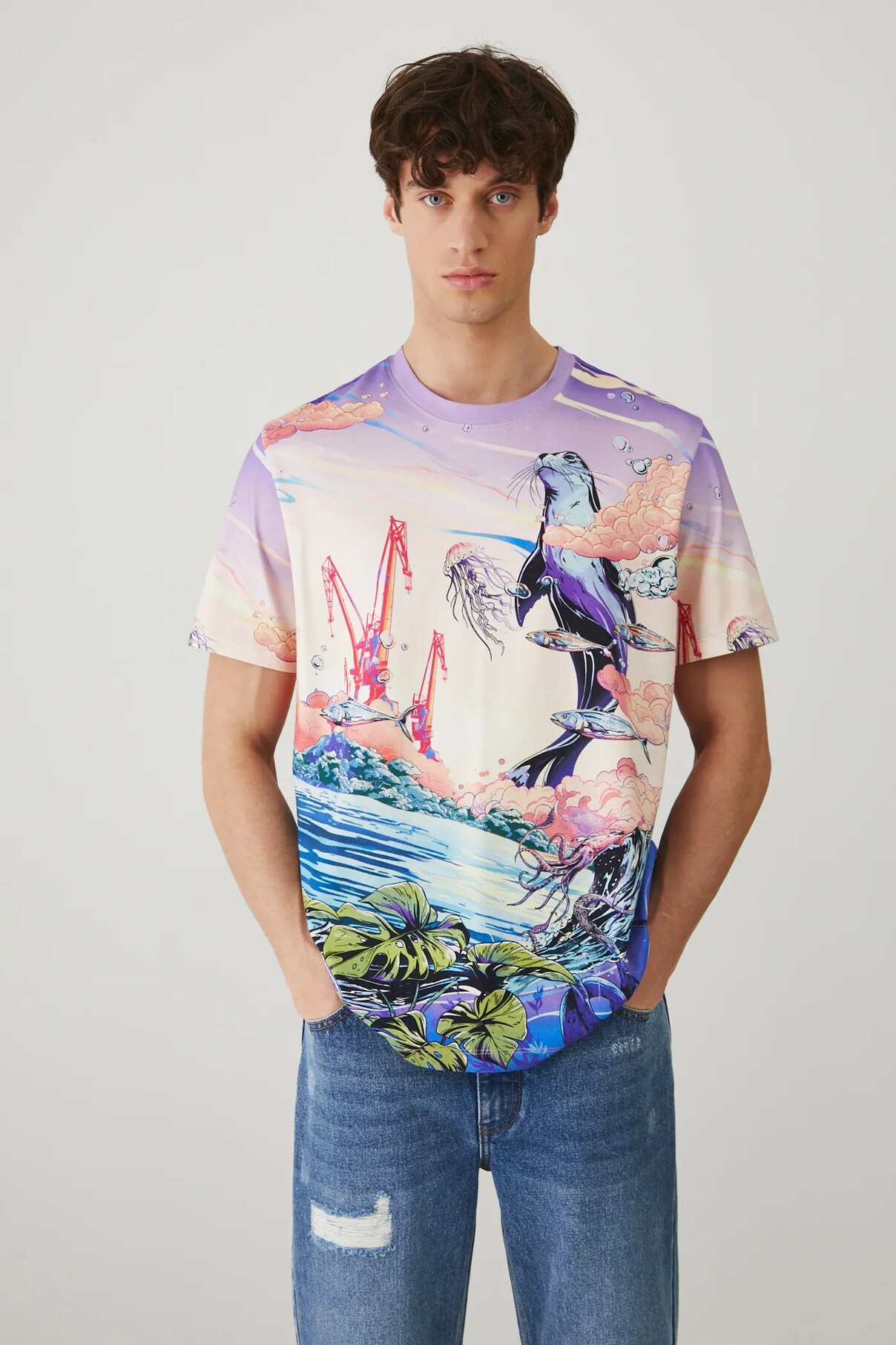 Футболка из коллекции Medicine. Модель выполнена из узорчатого трикотажного полотна.
