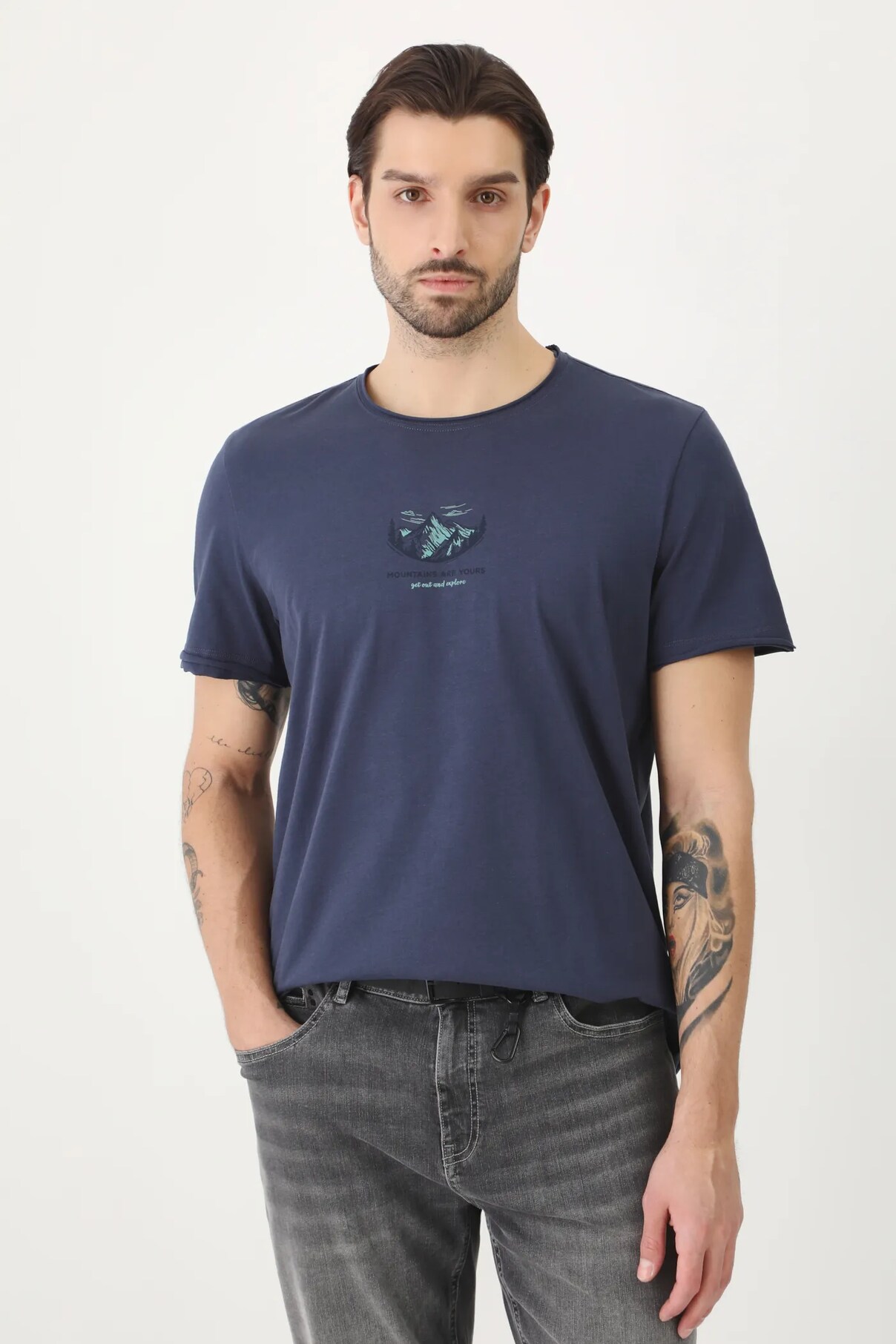 - Печать спереди с надписью: горы ваши — выходите и исследуйте.