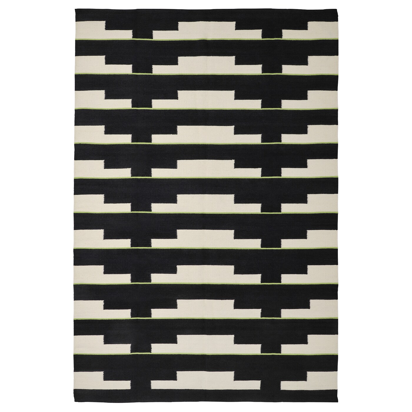 Ковер, безворсовый, черный/белый/светло-зеленый, ручная работа, 170x240 см