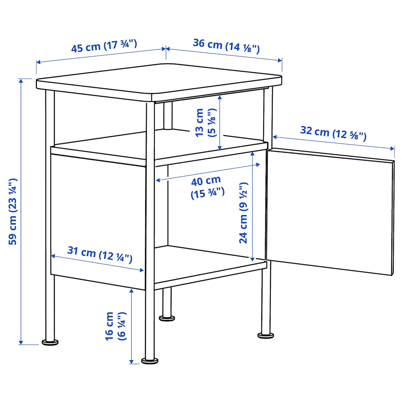 Прикроватная тумбочка оснащена закрытым местом для хранения вещей, что создает спокойную атмосферу в комнате, и открытым местом для хранения вещей на двух уровнях, к которым вы хотите иметь легкий доступ.