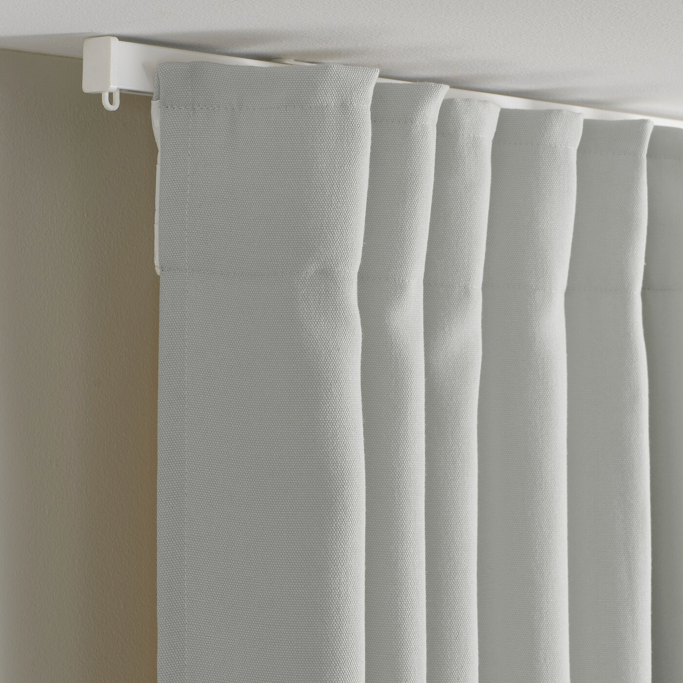 Шторы GINSTMOTT белого цвета привносят свежесть в любой интерьер, пропуская свет и обеспечивая безмятежное чувство уединения. Легкий и устойчивый к выцветанию переработанный полиэстер создает изящные складки.