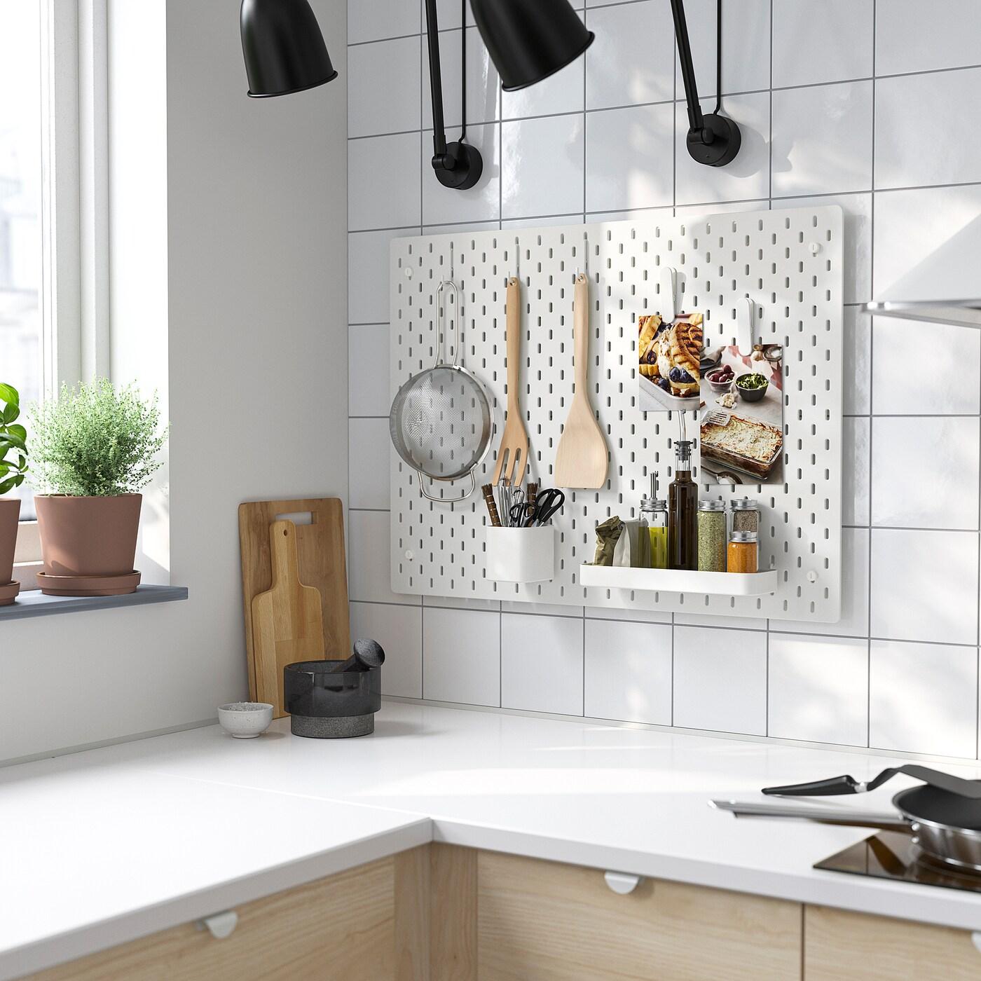 Вы можете использовать перфорированную доску SKÅDIS и аксессуары для нее, чтобы демонстрировать свои любимые вещи и при этом поддерживать порядок в доме.
