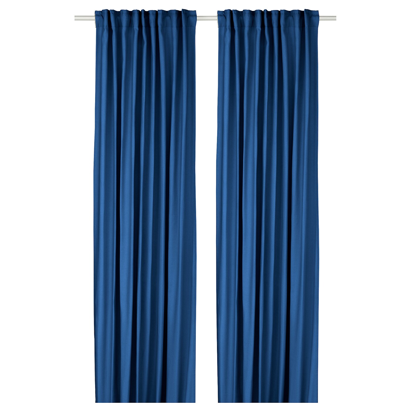 Шторы, 1 пара, темно-синие/с тесьмой, 145x250 см