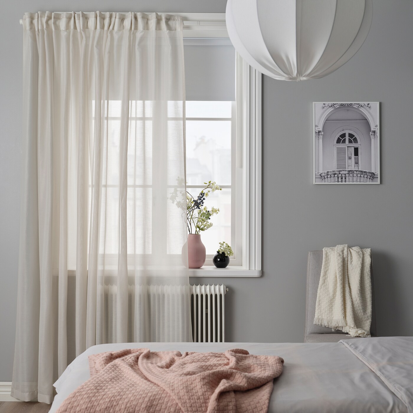 Прозрачная занавеска STENFRÖ смягчает резкие солнечные лучи и добавляет полноты вашему окну. Бежевый тон подходит ко всему, а щедрая ширина в 300 см позволяет создавать множество великолепных складок.