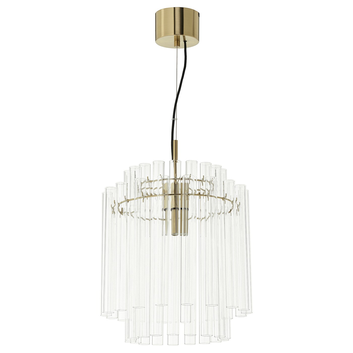 Эта элегантная люстра гарантированно привлечет внимание своими 36 стеклянными трубками, висящими на металлических крючках с латунным покрытием.