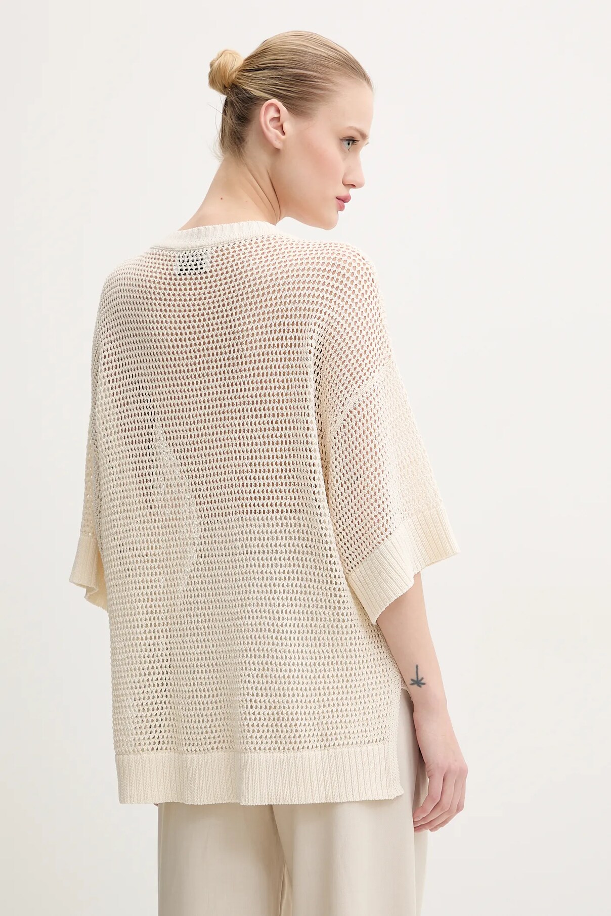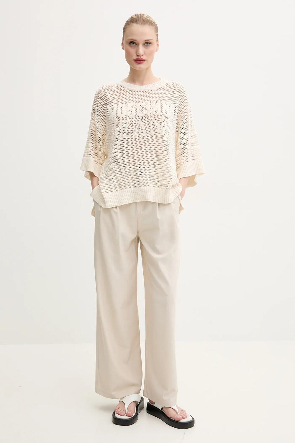 Свитер из коллекции Moschino Jeans из ажурного трикотажного полотна. Модель из дышащего материала с высоким содержанием хлопка.