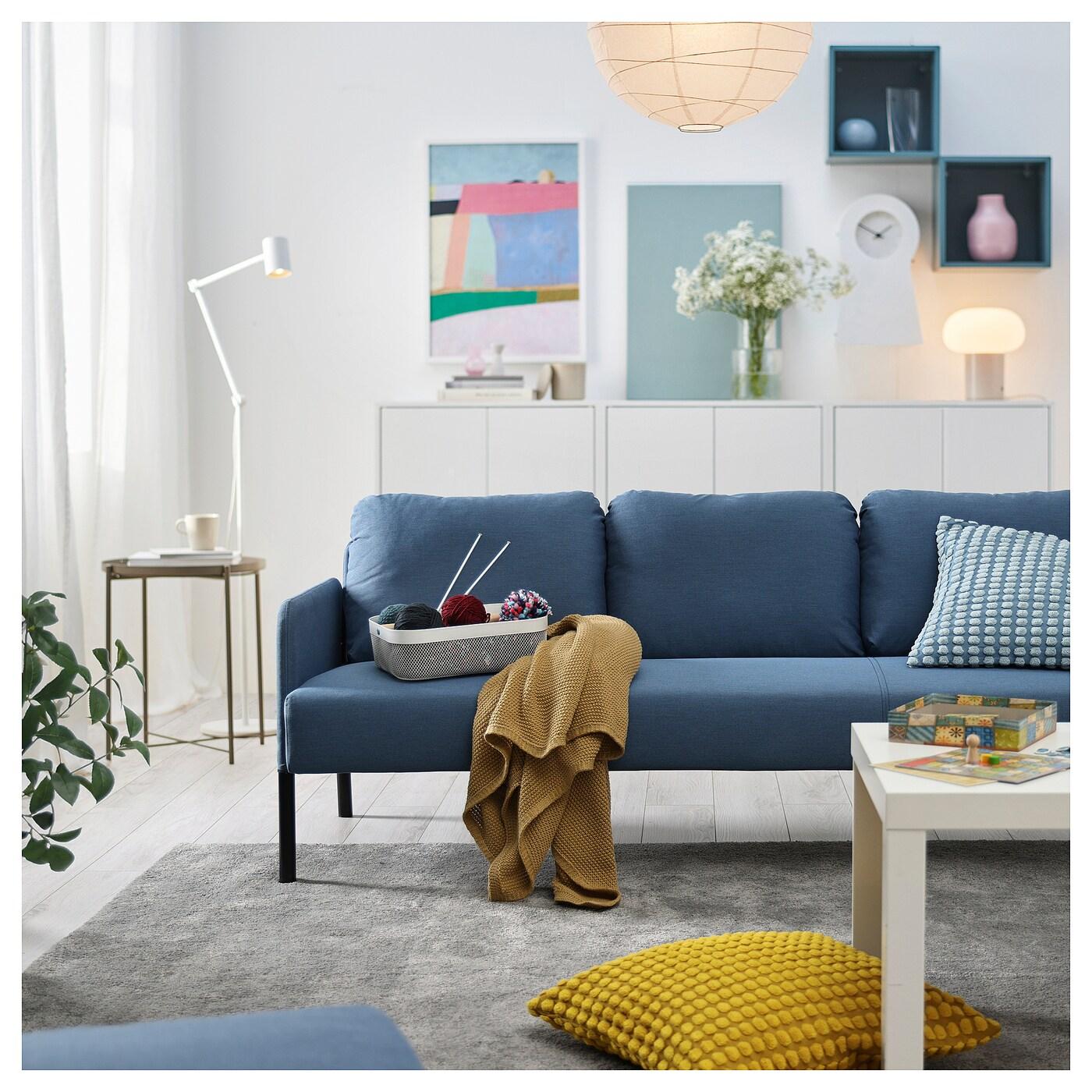 Диван GLOSTAD имеет простую конструкцию, которая в то же время удобна благодаря толстому сиденью, мягким подлокотникам и мягким подушкам спинки, которые надежно фиксируются на месте.