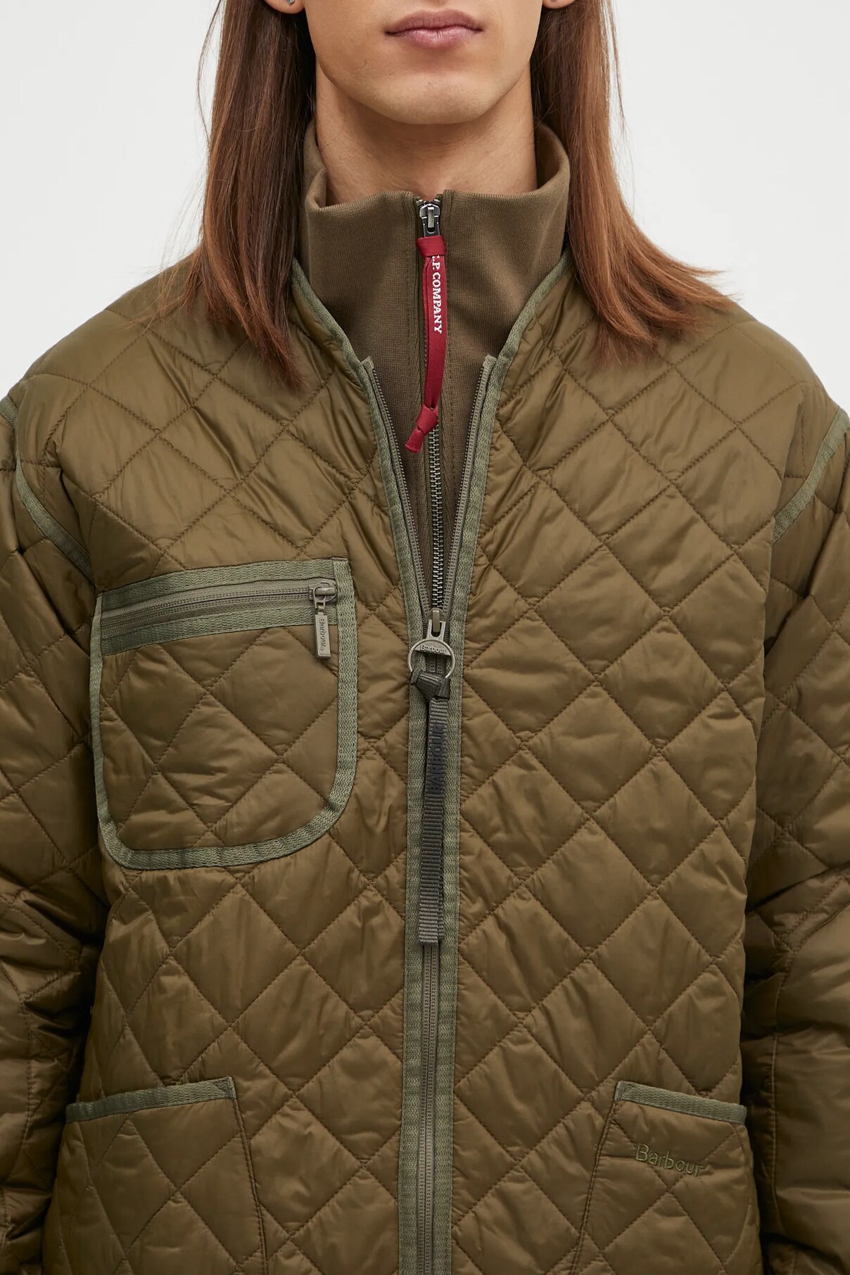 Куртка из коллекции Barbour. Переходная модель из стеганого материала. Модель с синтетическим утеплителем, обеспечивающим дополнительный комфорт при низких температурах. Продукция Barbour предлагается в размерах, преобразованных из французских стандартов в европейские.