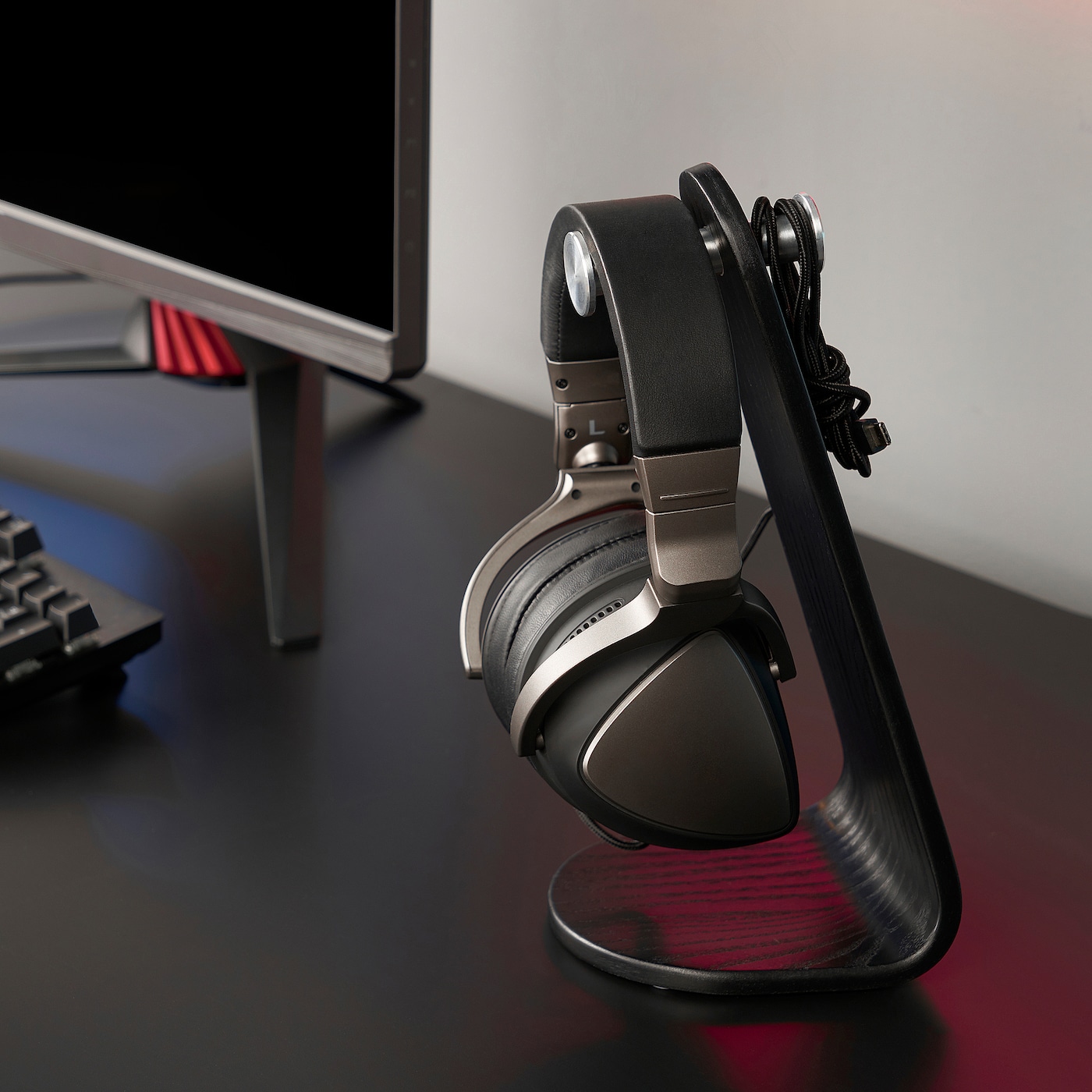 На этой подставке достаточно места для кабелей и стильной гарнитуры, которую можно продемонстрировать, имея ее под рукой.
