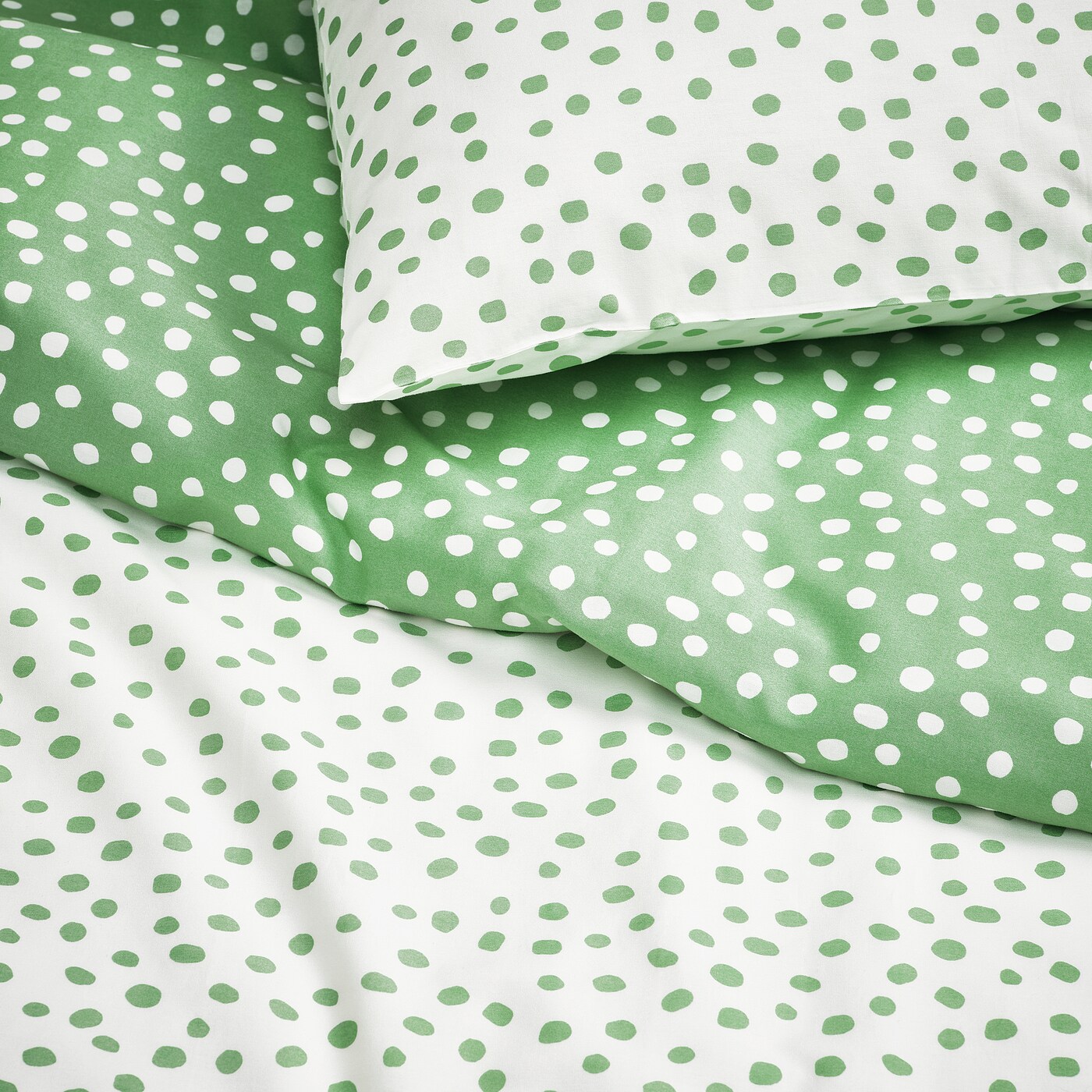 Пододеяльник и 2 наволочки, зелено-белый/в горошек, 200x230/50x80 см