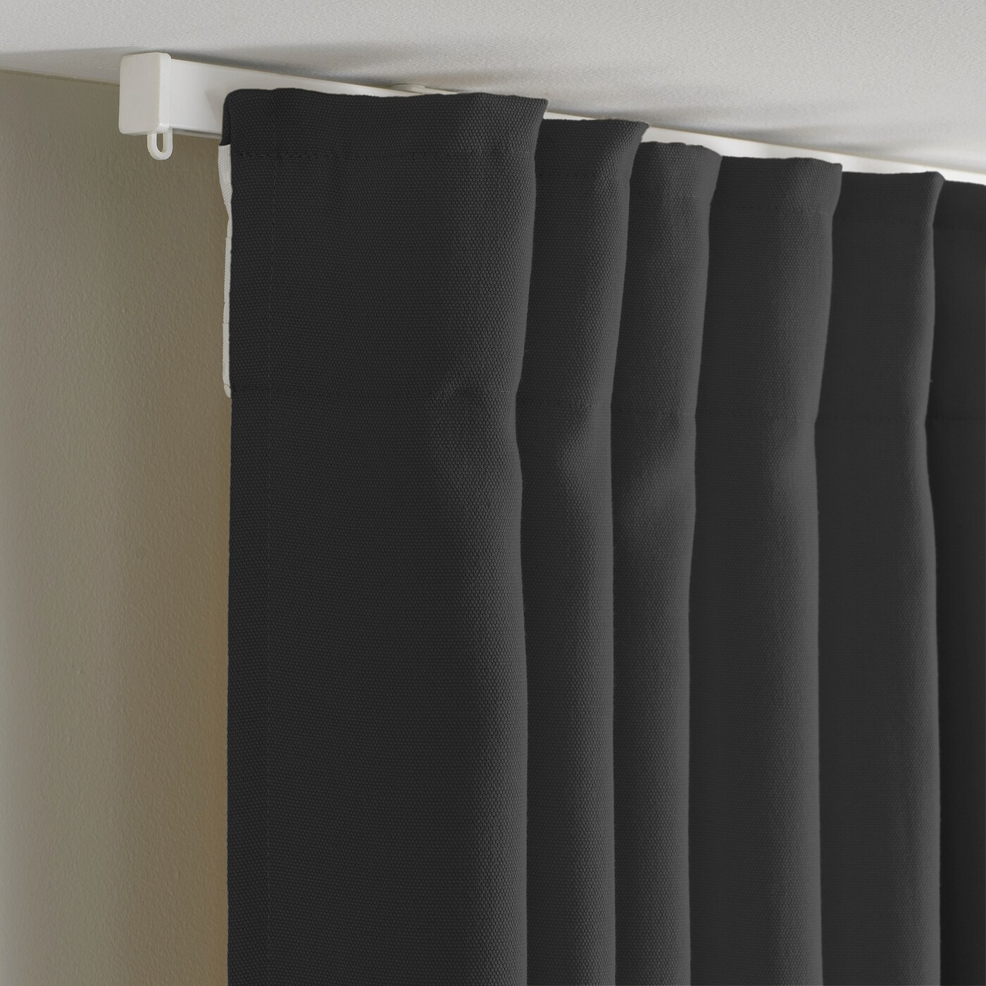 Шторы GINSTMOTT темно-серого цвета легко вписываются в любой интерьер, пропуская свет и обеспечивая безмятежное чувство уединения. Легкий и устойчивый к выцветанию переработанный полиэстер создает изящные складки.