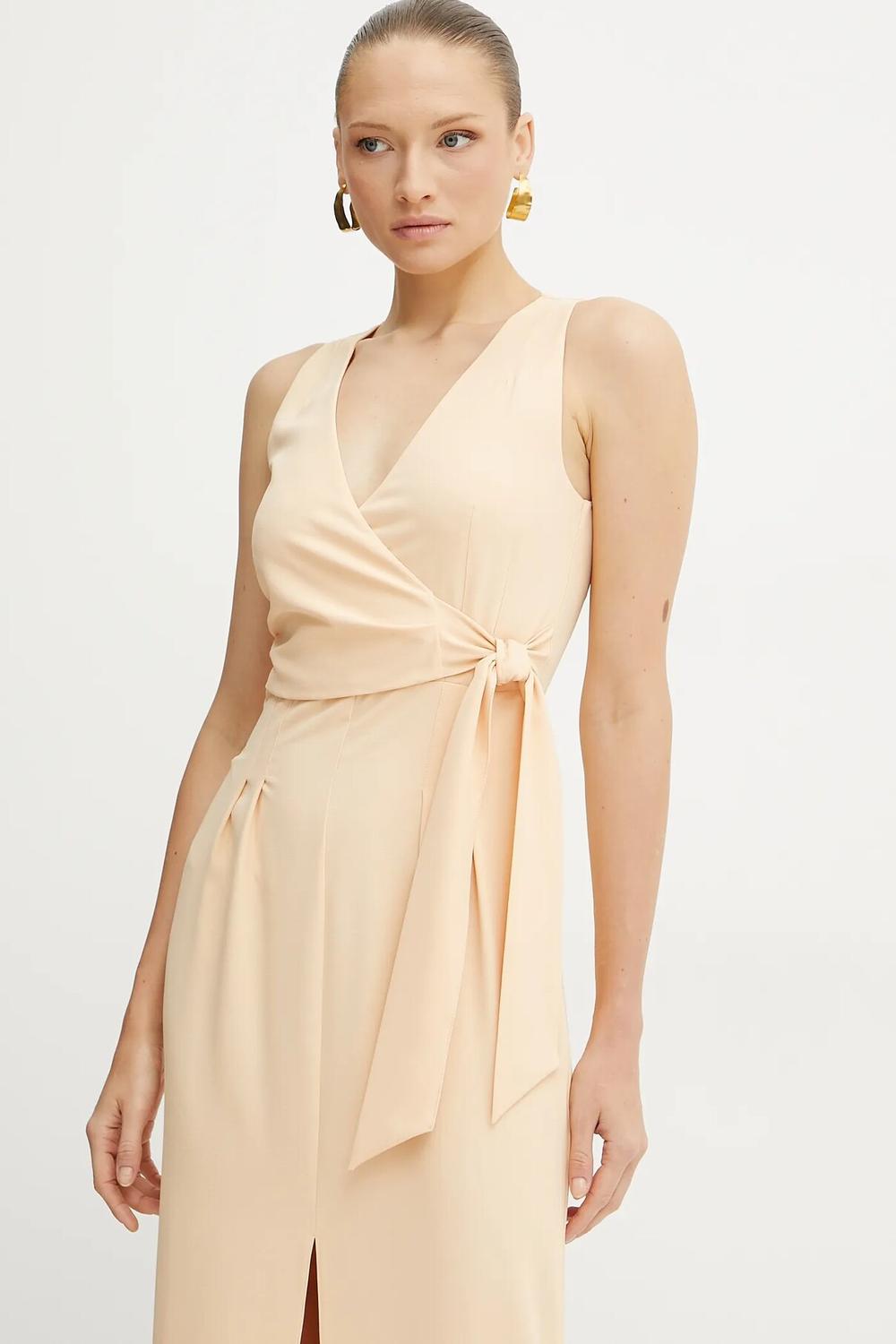 - Модель из линейки Go Green, изготовленная из волокон, полученных с использованием устойчивых производственных процессов, что снижает их воздействие на окружающую среду. - Модель длины миди. - Простой дизайн. - Острый вырез горловины с запахом. - Завяжите на талии. - Нерегулируемые, несъемные лямки. - Декоративный разрез сзади. - Потайная застежка-молния сзади. - Декоративные оборки. - Длина: 129 см. - Ширина под мышками: 41 см. - Размеры указаны для размера: 36.