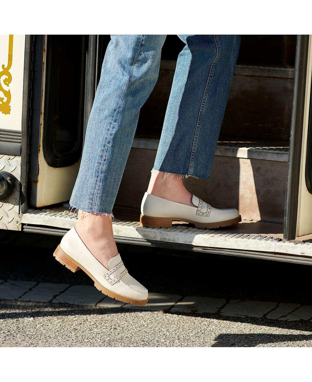 Шагните в безвременье. Такие повседневные пенни-лоферы должны быть в вашей тележке и на ваших ногах. Верх из искусственной кожи с закругленным мыском, без застежки, прошитыми деталями и подошвой с выступами. Подкладка союзки и носка, носок и пятка частично изготовлены из переработанных материалов на 60 %. Комфортный пакет Soft System обеспечивает поддержку, гибкость и амортизацию в течение всего дня. Подошва платформы Traction обеспечивает дополнительную устойчивость. Блочный каблук Just Right Height высотой 1,25 дюйма.
