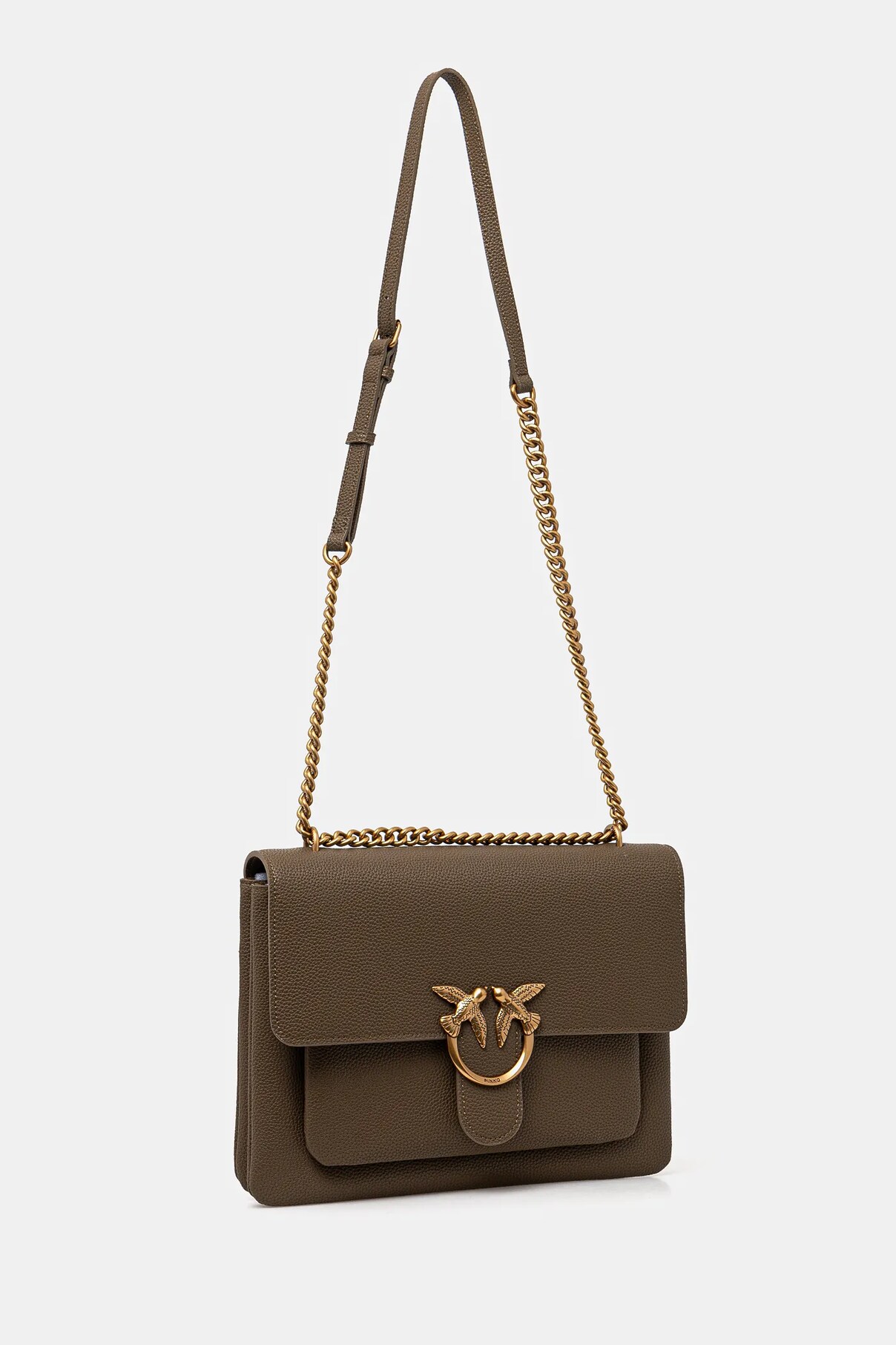 Сумка среднего размера из коллекции Pinko. Застегивающаяся модель из натуральной кожи. Модель упакована в фирменную коробку.