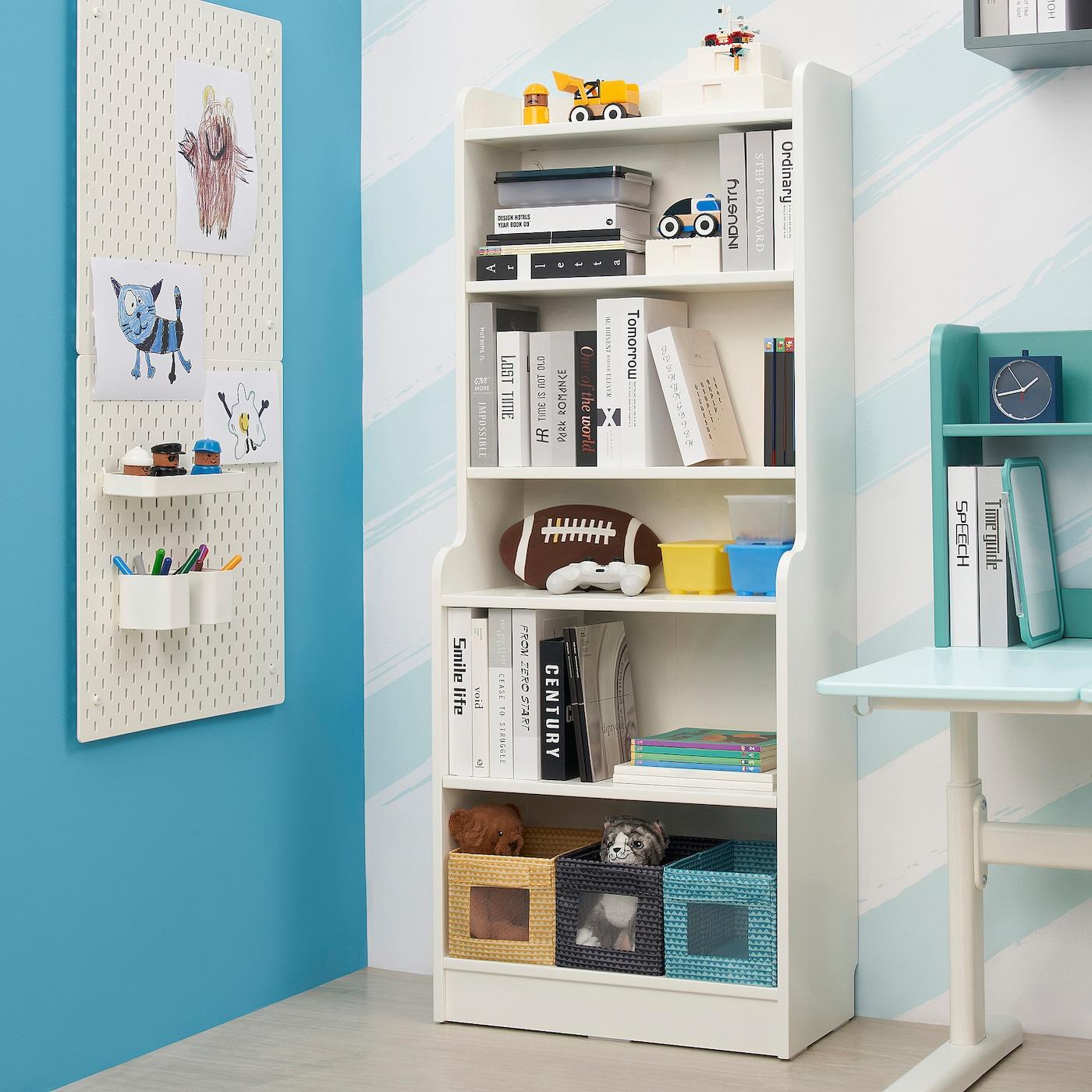 Создано с учетом пожеланий детей, чтобы они могли самостоятельно организовывать книги и игрушки, а также демонстрировать вещи, которые они сделали или которые им нравятся.
