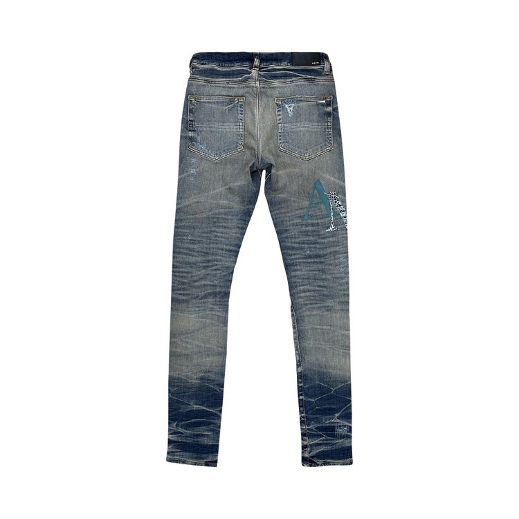 Джинсы Amiri Leather Staggered Logo Jeans 'Vintage Indigo', синий 64 560₽