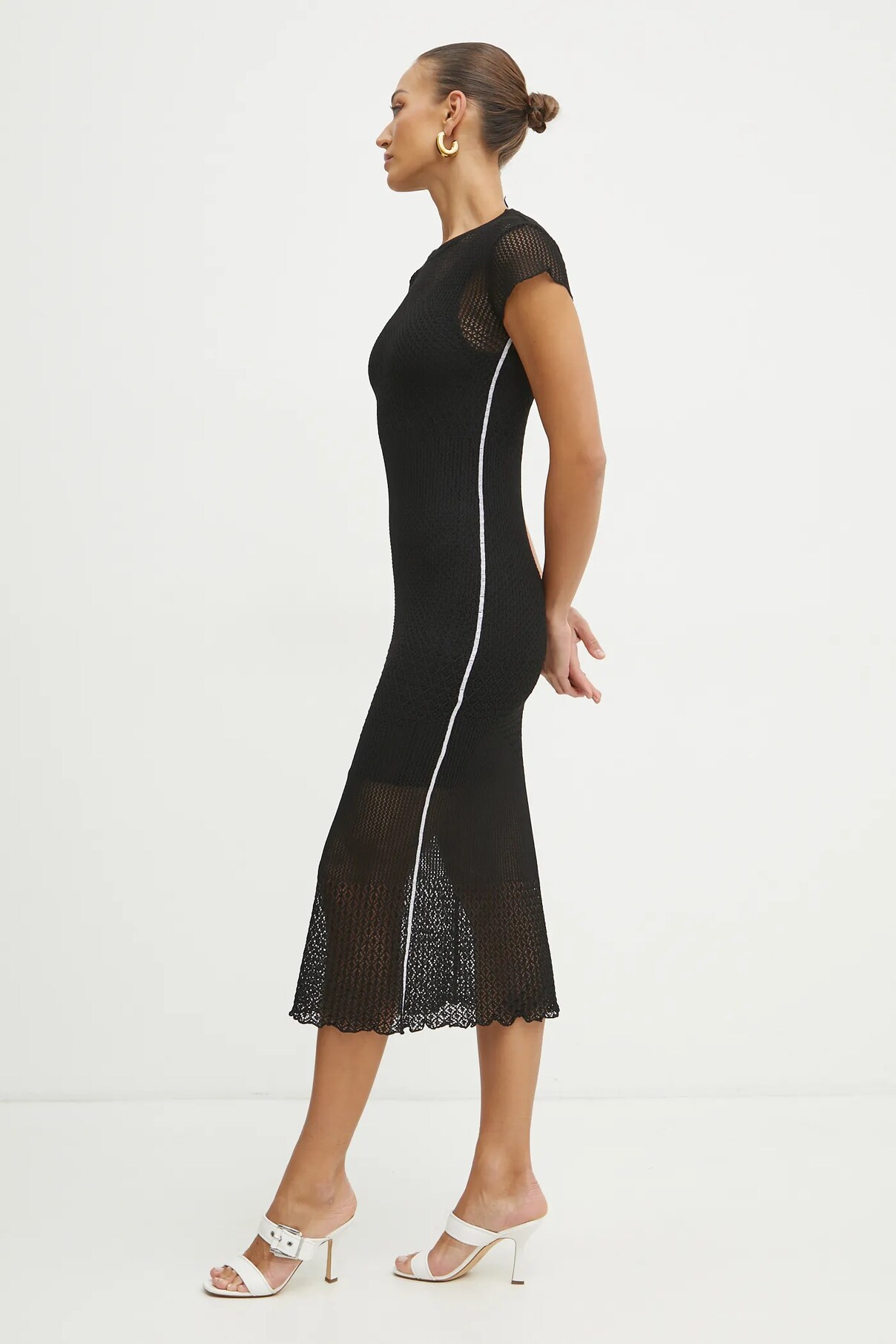 Платье из коллекции Pinko из ажурного трикотажа. Модель из эластичного материала, подчеркивающего и формирующего силуэт.