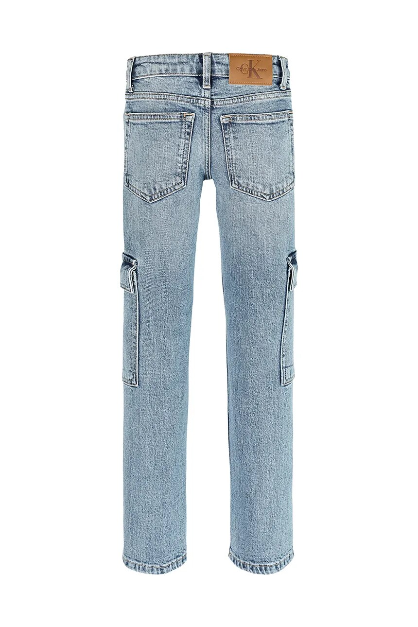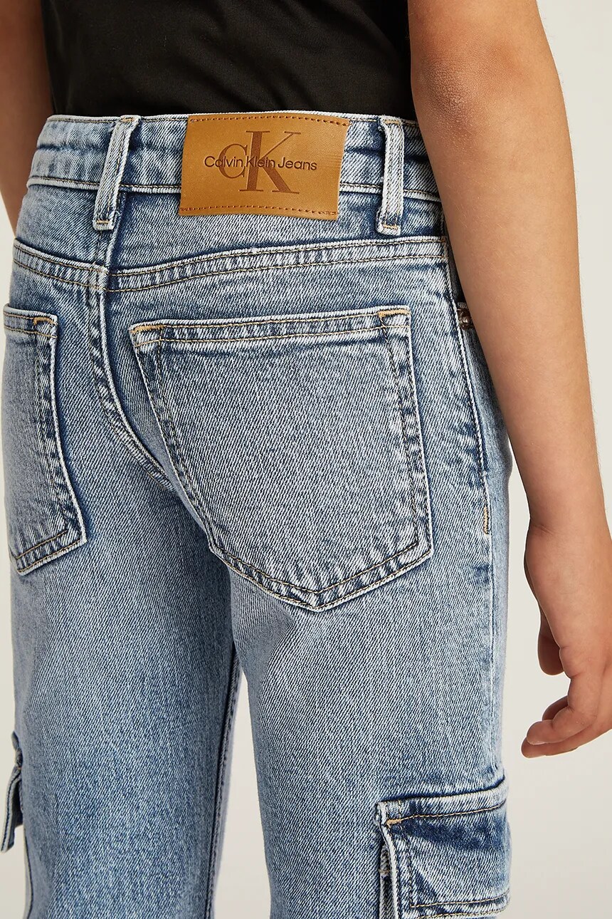 Детские джинсы из коллекции Calvin Klein Jeans прямого кроя с высокой талией. Модель выполнена из слегка эластичного, декоративно потертого денима.