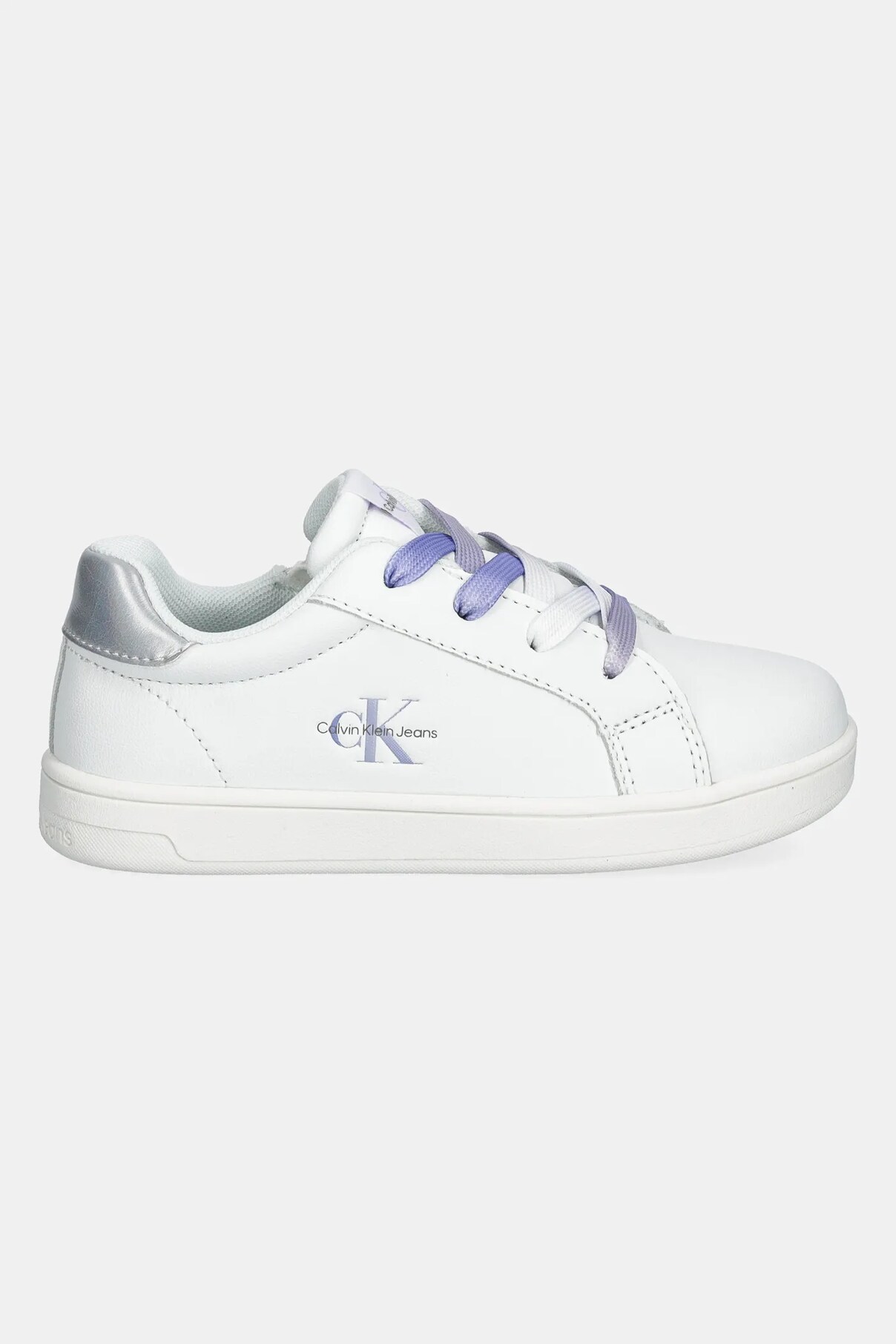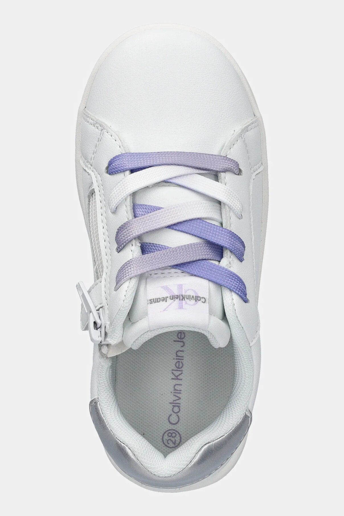 Детские кроссовки из коллекции Calvin Klein Jeans из экологической кожи. Модель с резиновой подошвой, прочной и устойчивой к повреждениям.