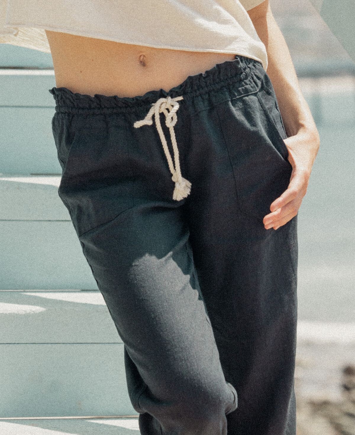 Будьте проще в Oceanside: широкие хлопковые брюки Roxy с завязками создают идеальный образ для выходных.