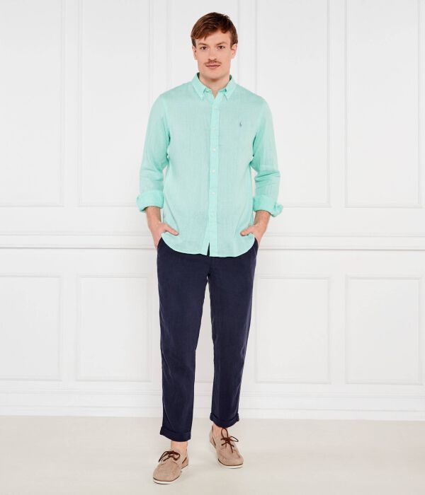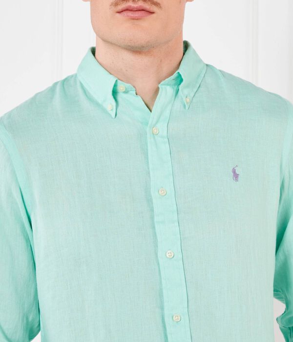 Льняная рубашка Custom fit Polo Ralph Lauren, голубой