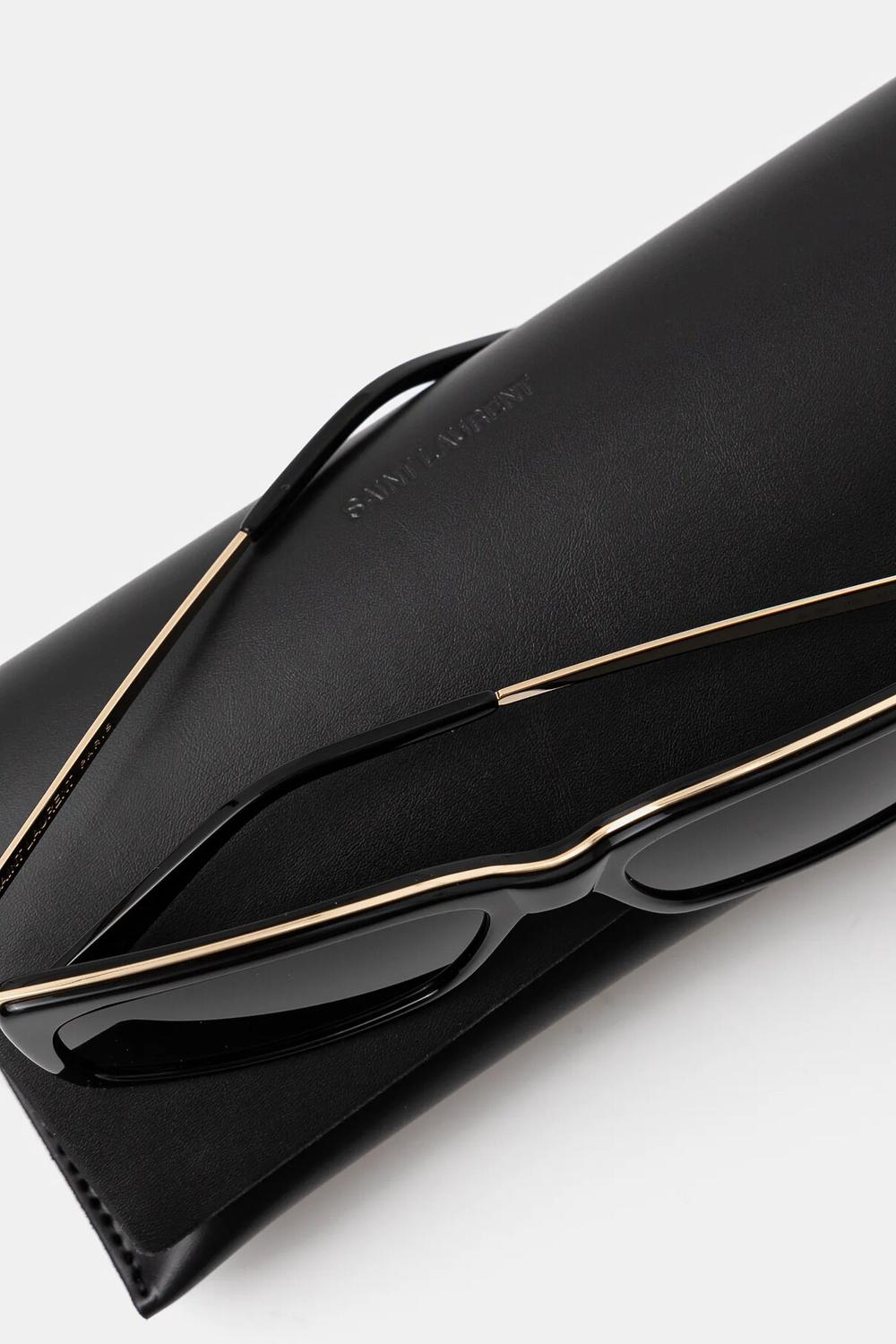 Солнцезащитные очки из коллекции Saint Laurent. Модель с гладкими линзами и оправой из комбинации пластика и металла. Имеет фильтр UV 400.